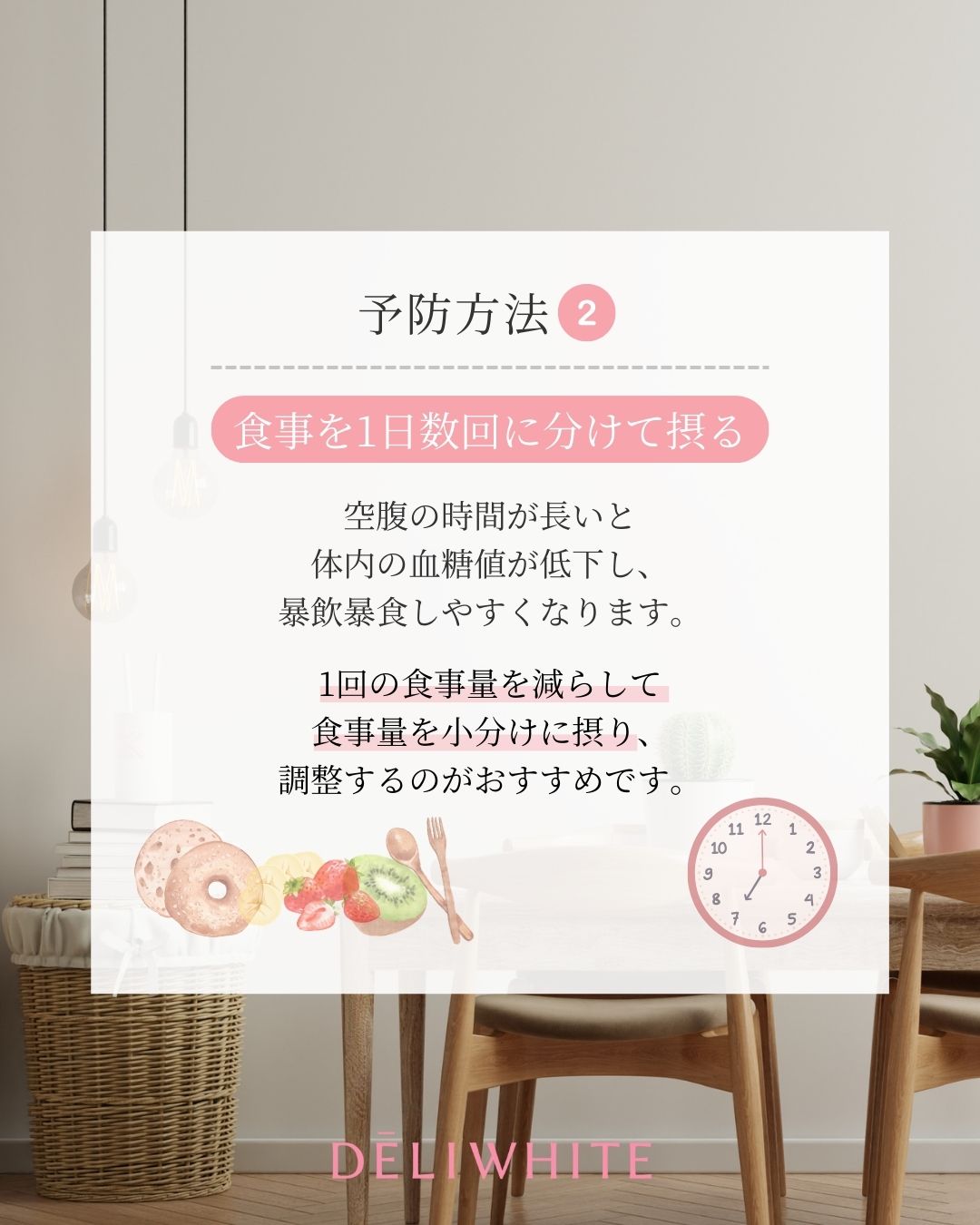 4枚目 ▶︎ 暴食の予防方法の紹介②(食事を複数回に分けて摂る)