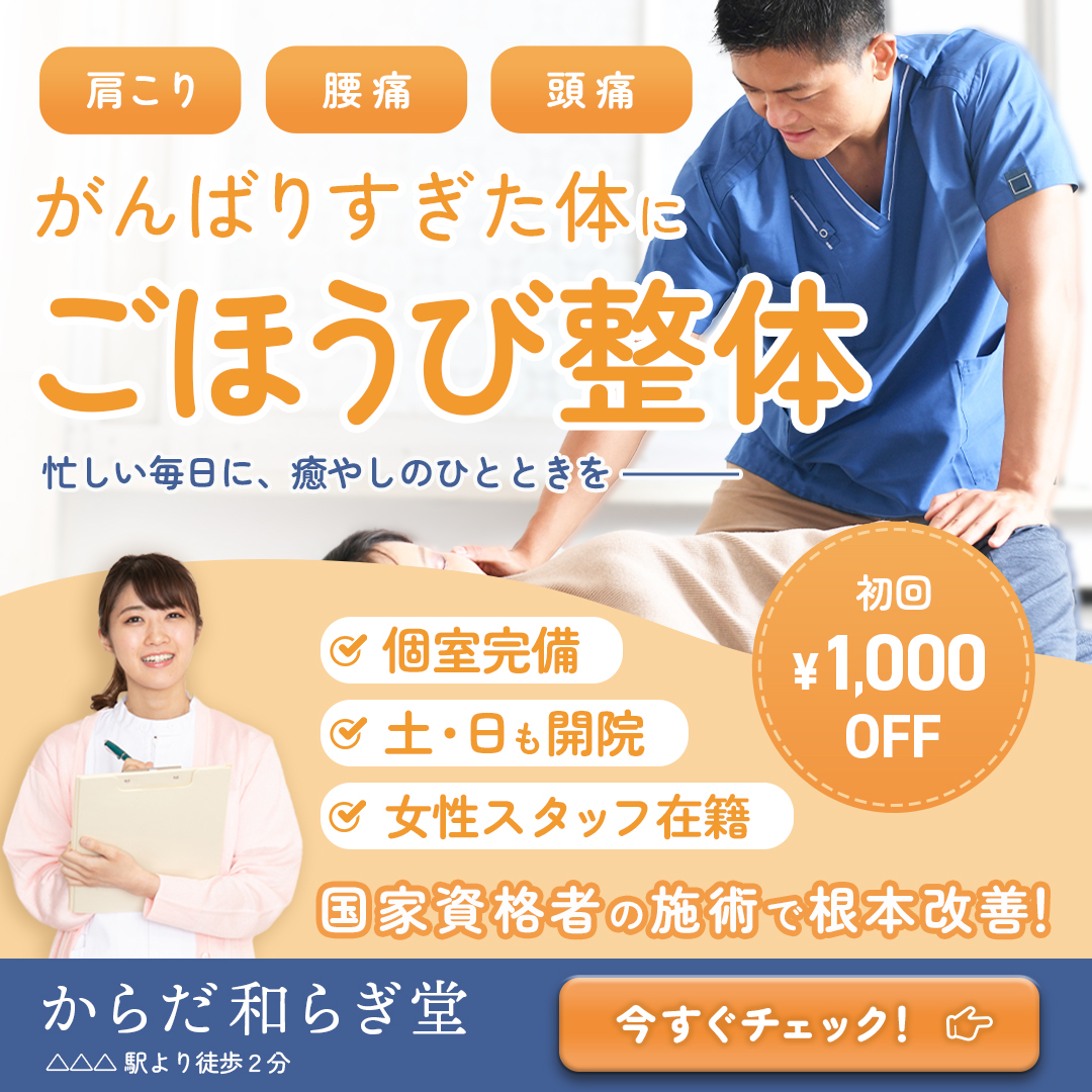 - 女性スタッフが在籍しており、女性や整体施術が初めての方にも安心して来院してほしい。