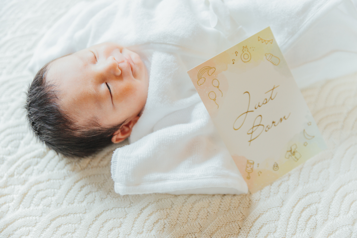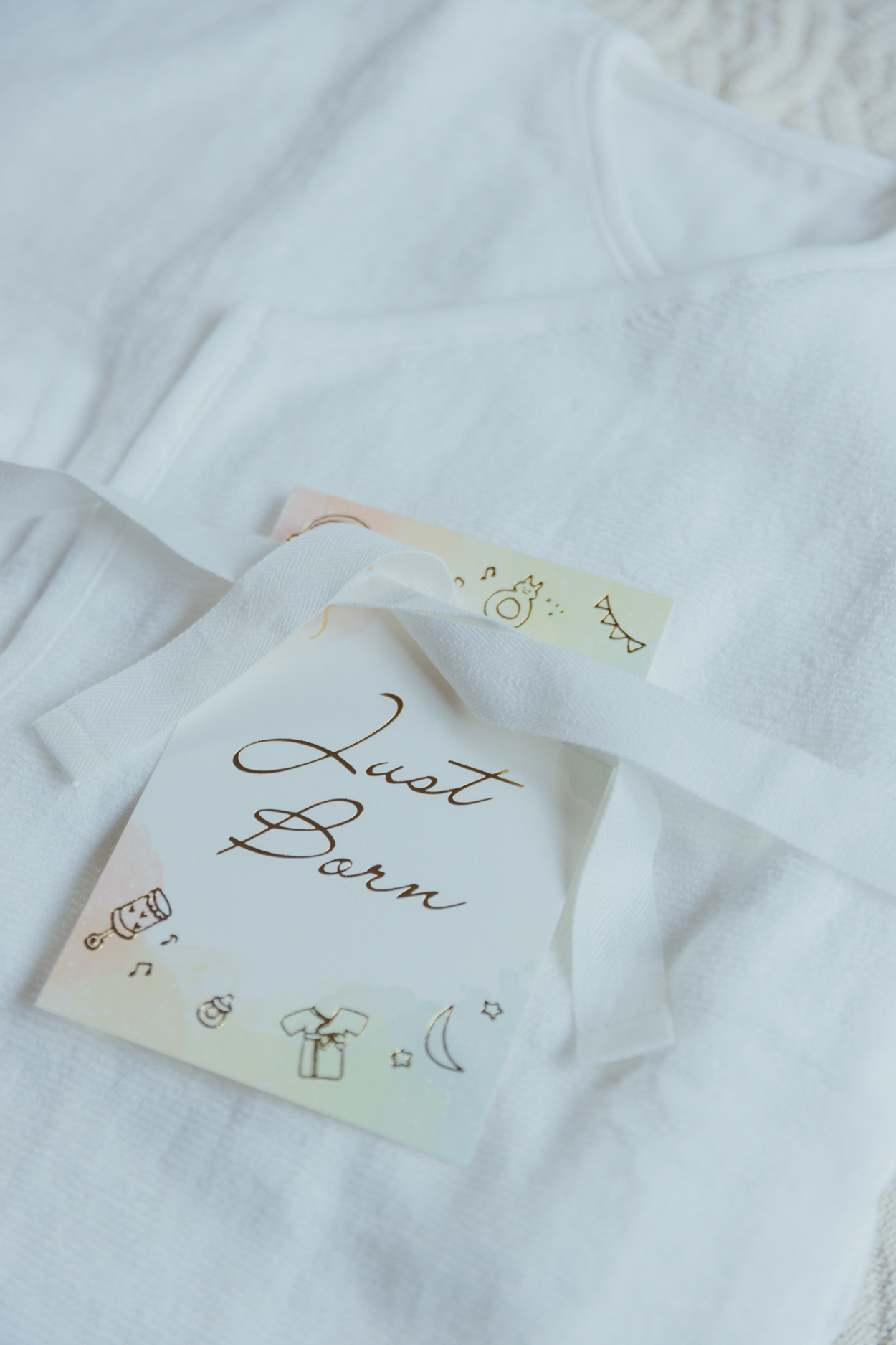 株式会社uniの商品「最強のファーストベビー服」の商品に添えるJust Bornカードをデザインしました。