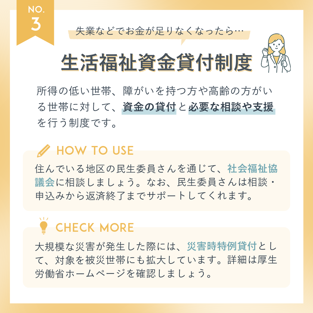 - 制度名をひと目見るだけではどんなシーンで利用する制度かが分かりづらいため、各制度の冒頭に利用シーンを表す一言を付けました。