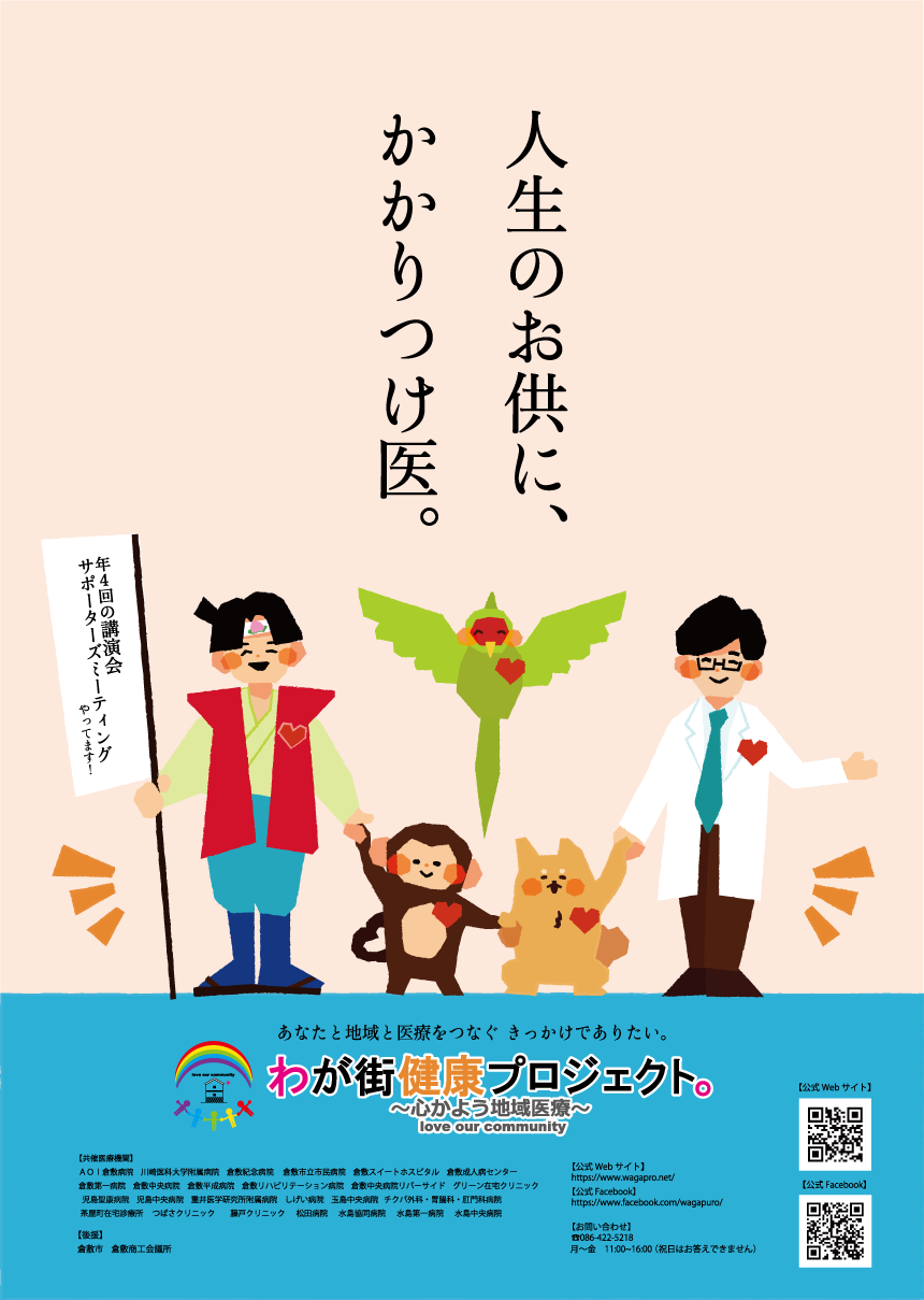 岡山県倉敷市の「わが街健康プロジェクト」の ポスター公募に授業で応募しました。 大学2年生の時に制作しました。