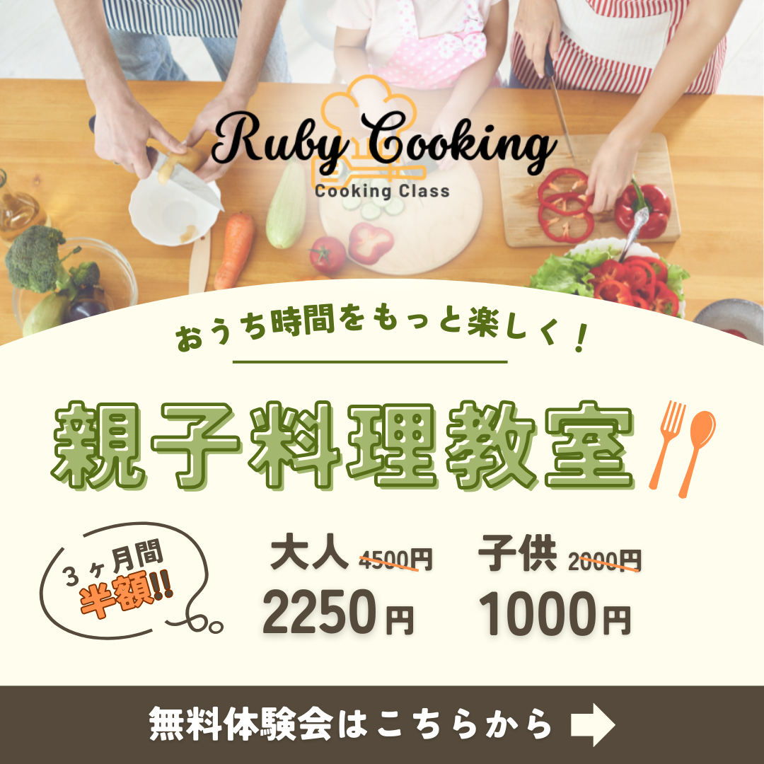 第一に料理教室が一眼でわかるようにデザインし、今後親子一緒に料理することで