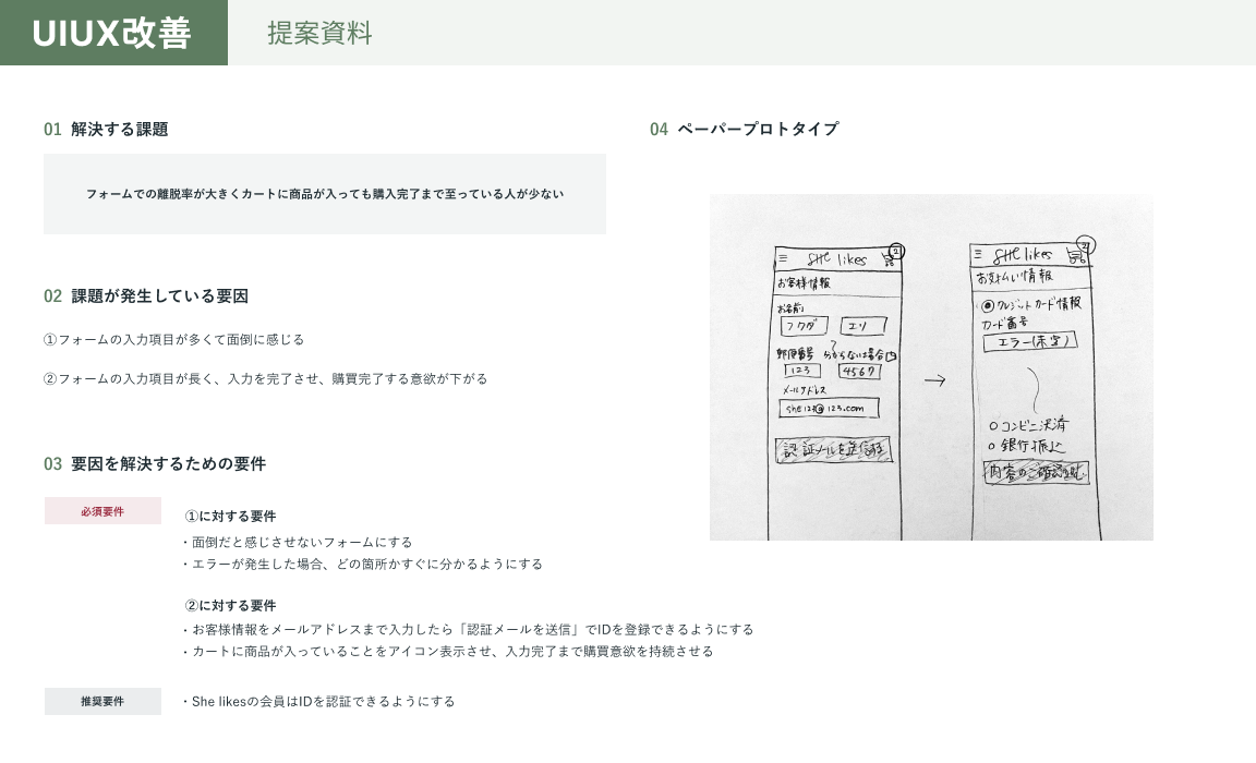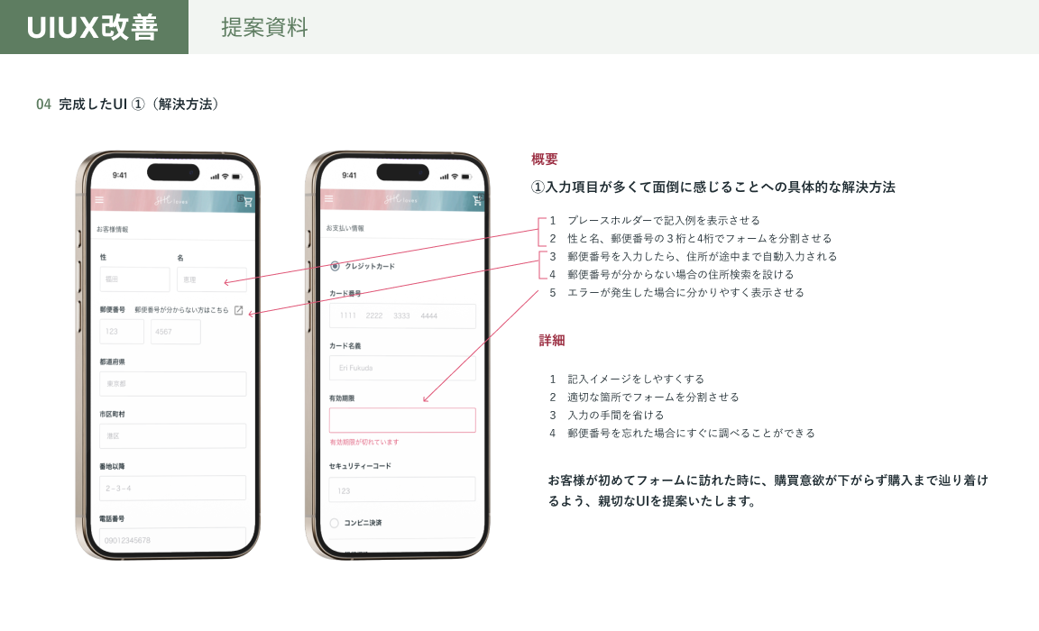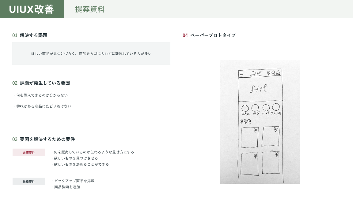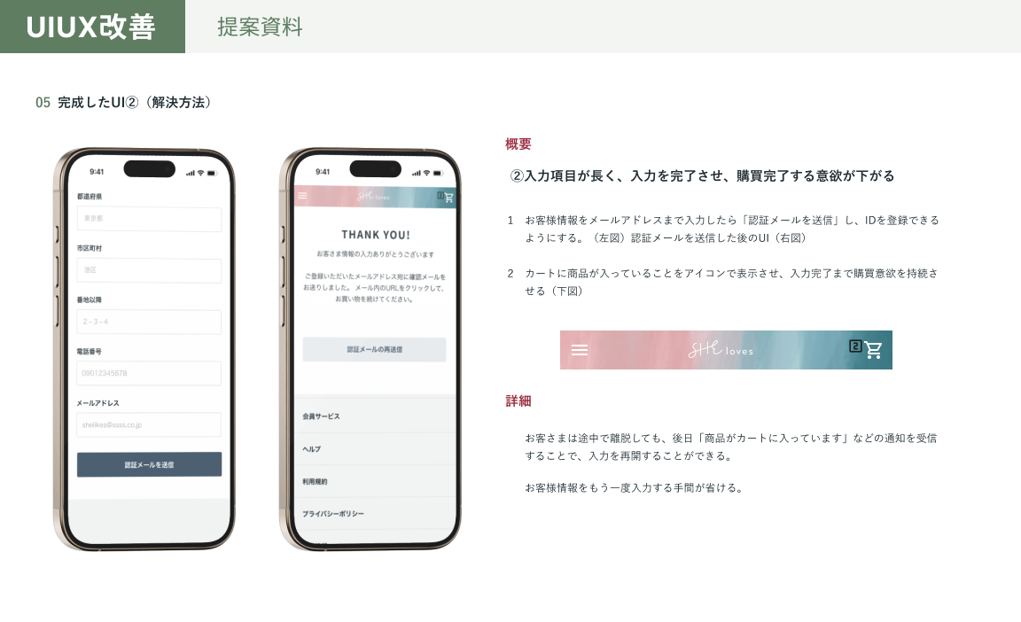 UIUX改善/ECサイト masayo マルチデザイナー OVERVIEW ECサイトの課題が発生している要因を考え、仮説を立てて、改善案を提案。 【使用ツール】Figma【制作期間】48時間 YEAR 2024