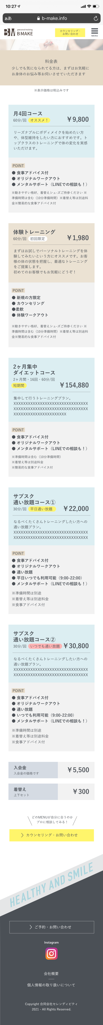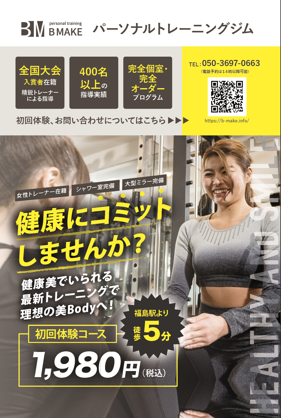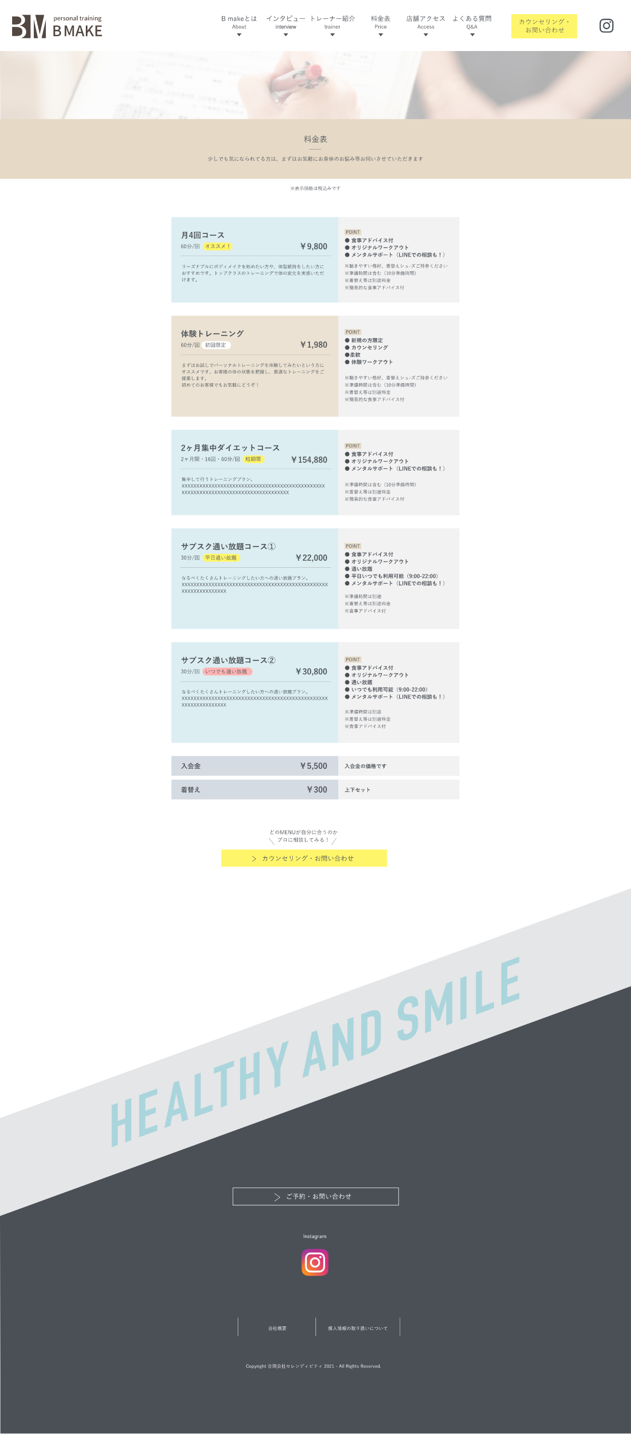 パーソナルトレーナージム 公式サイト改修/B2屋外ポスター制作 kumo フリーランス グラフィック・Webデザイナー サイトはこちらですhttps://b-make.info/【TOPページ】【料金表】✨SP版【B2屋外ポスター】 WEBSITE