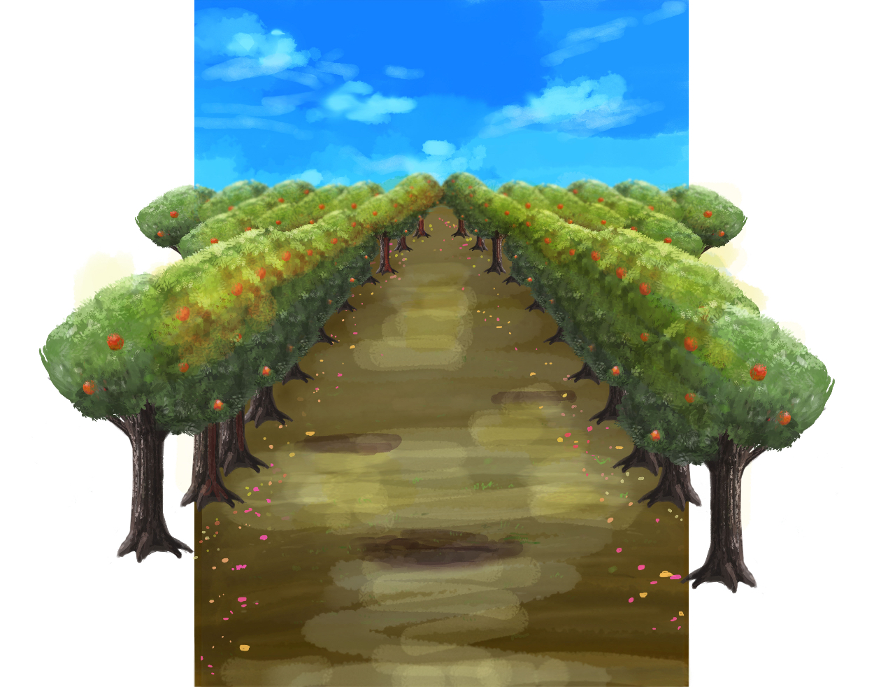 2.木を並べ、地面と空を描く