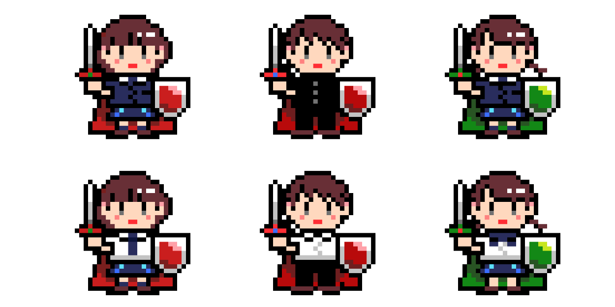 ・冬服は色味の印象が暗くなってしまったため、結果的には下のシャツの方のドット絵を使用