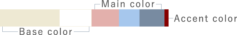 使用したゴールドのピンクに相性の良い色を模索し、トライアド配色から明るいブルーと暗いブルーの2色を使用。暗いブルーはフォントのカラーとして使用した。