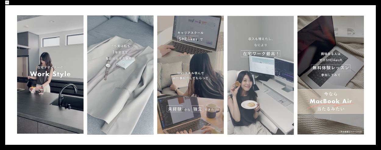 SHE株式会社様から動画素材をご提供いただき、ラフイメージをもとに動画編集を行いました。