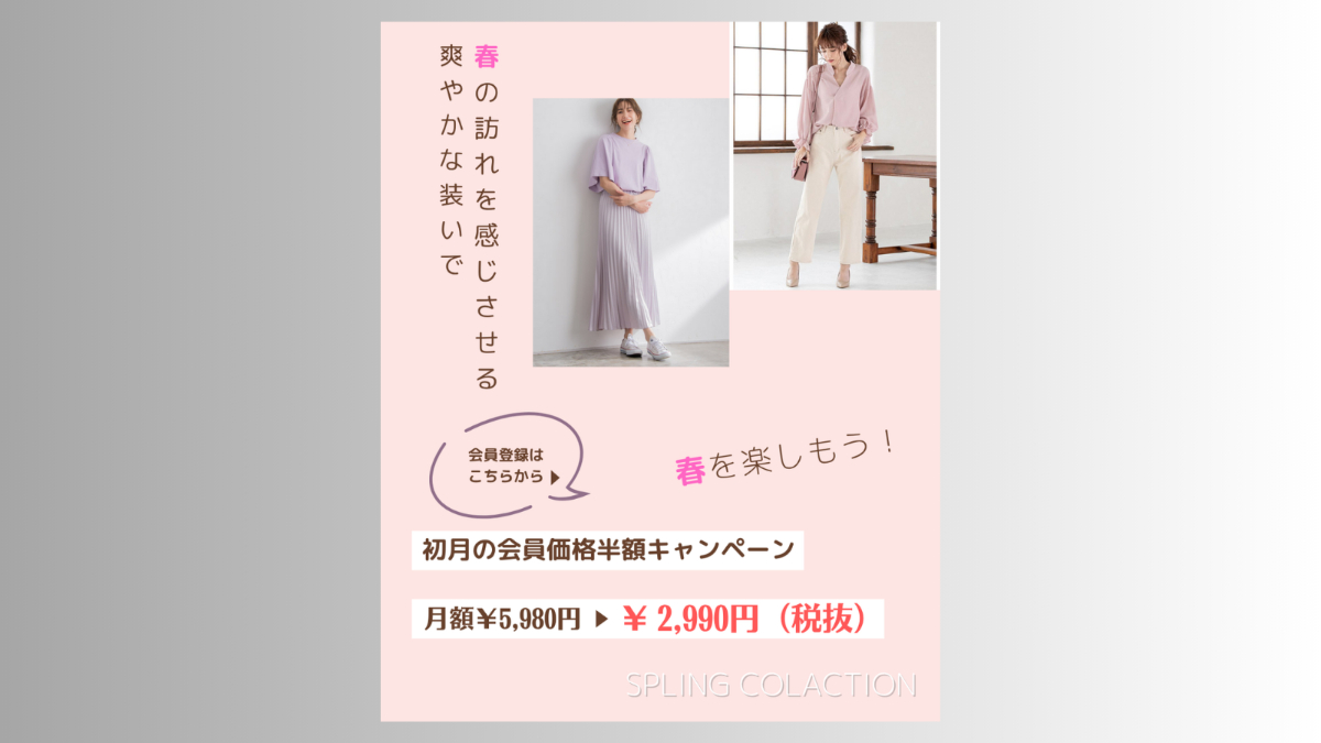 ・春を意識し配色をピンク系で統一し、春の文字をピンク色で強調しました。