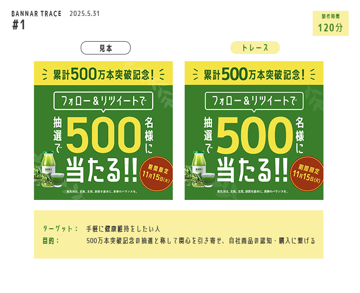 - ターゲット、目的、配色、情報設計、ビジュアルデザインについて詳細な分析を行った