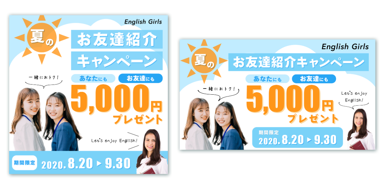 SHElikes MULTI CREATOR COURSE課題で架空英会話スクールのキャンペーンバナー制作に取り組みました。 ■使用ツール:Photoshop ■制作時間:12時間