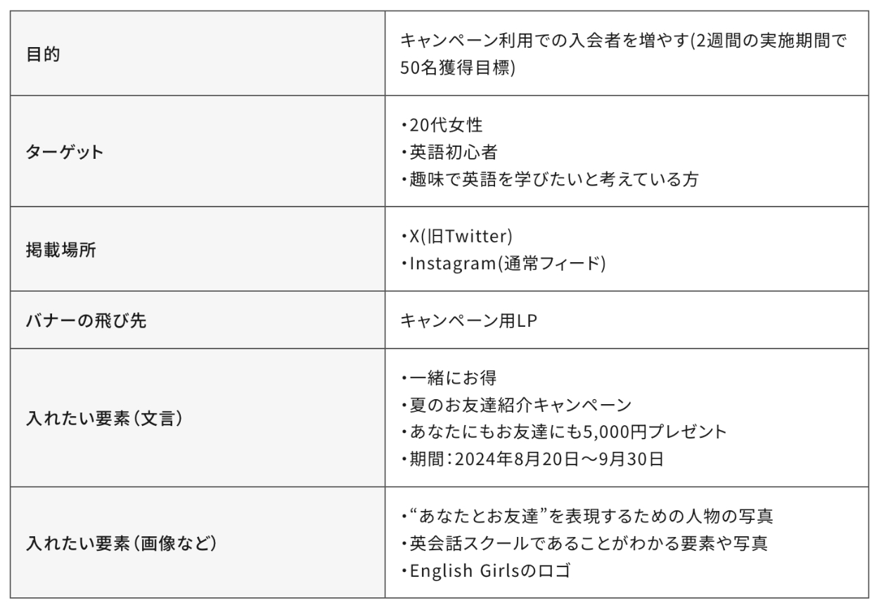 【課題】キャンペーンバナー(X/Instagram)