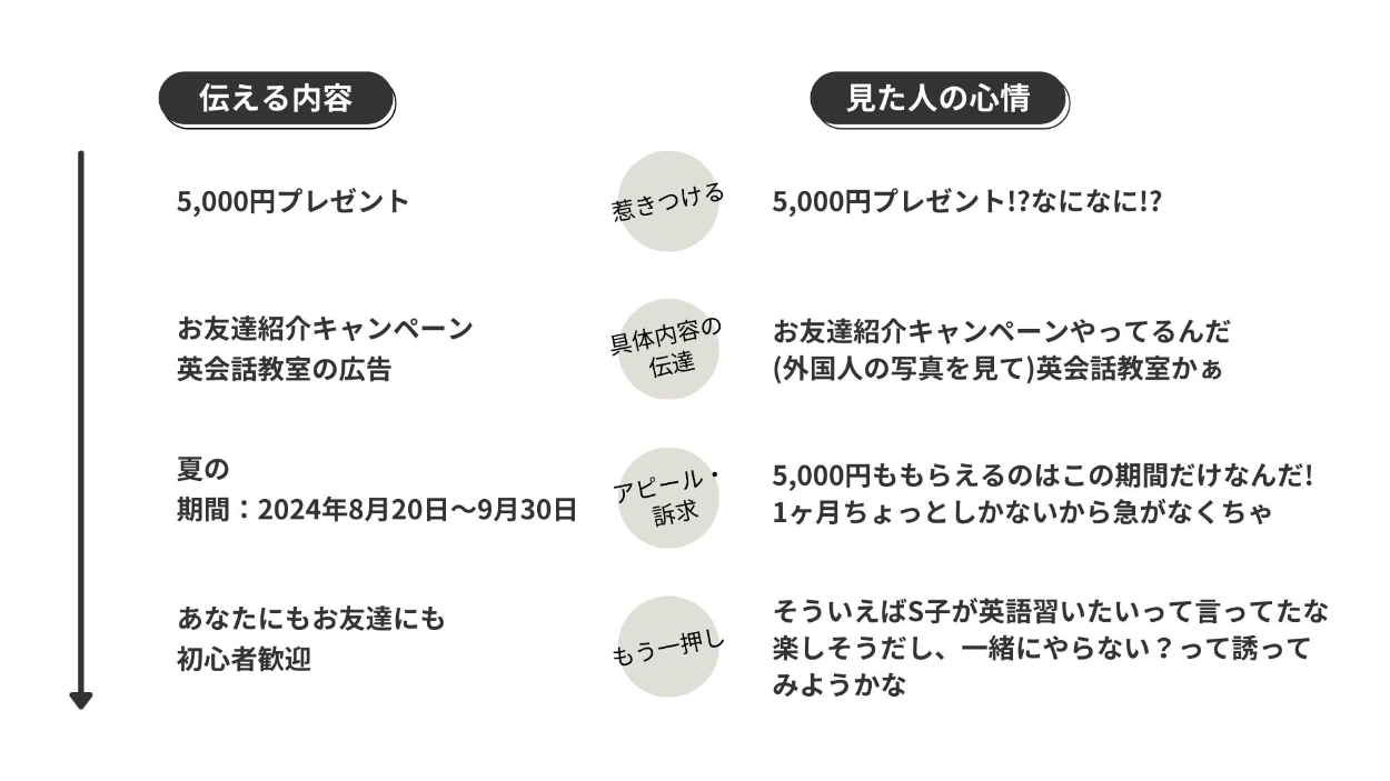 その上で、全部文字で伝えるのではなく写真やあしらい・配色からも情報を伝達する必要があるという点