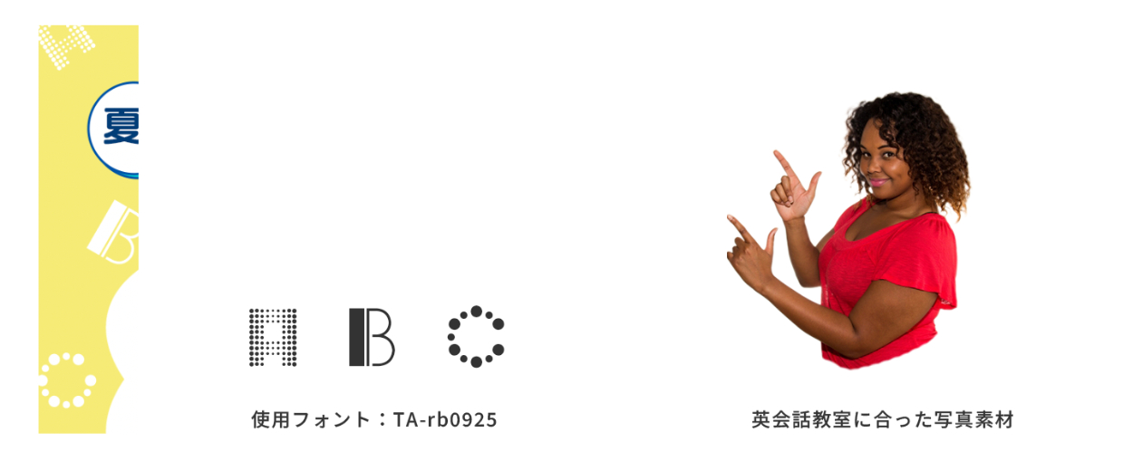 背景にさりげなく「A」「B」「C」の文字を敷き、ポップな印象になるよう、またさりげなく英会話要素を込めました。(使用フォント:TA-rb0925)