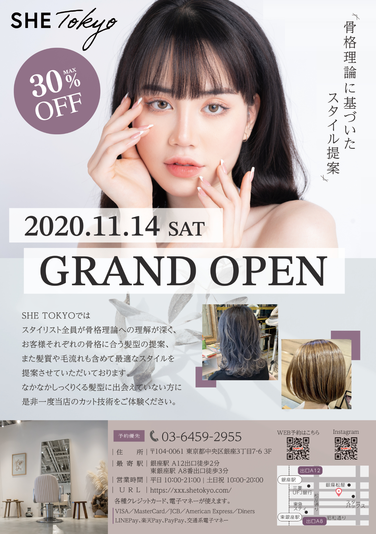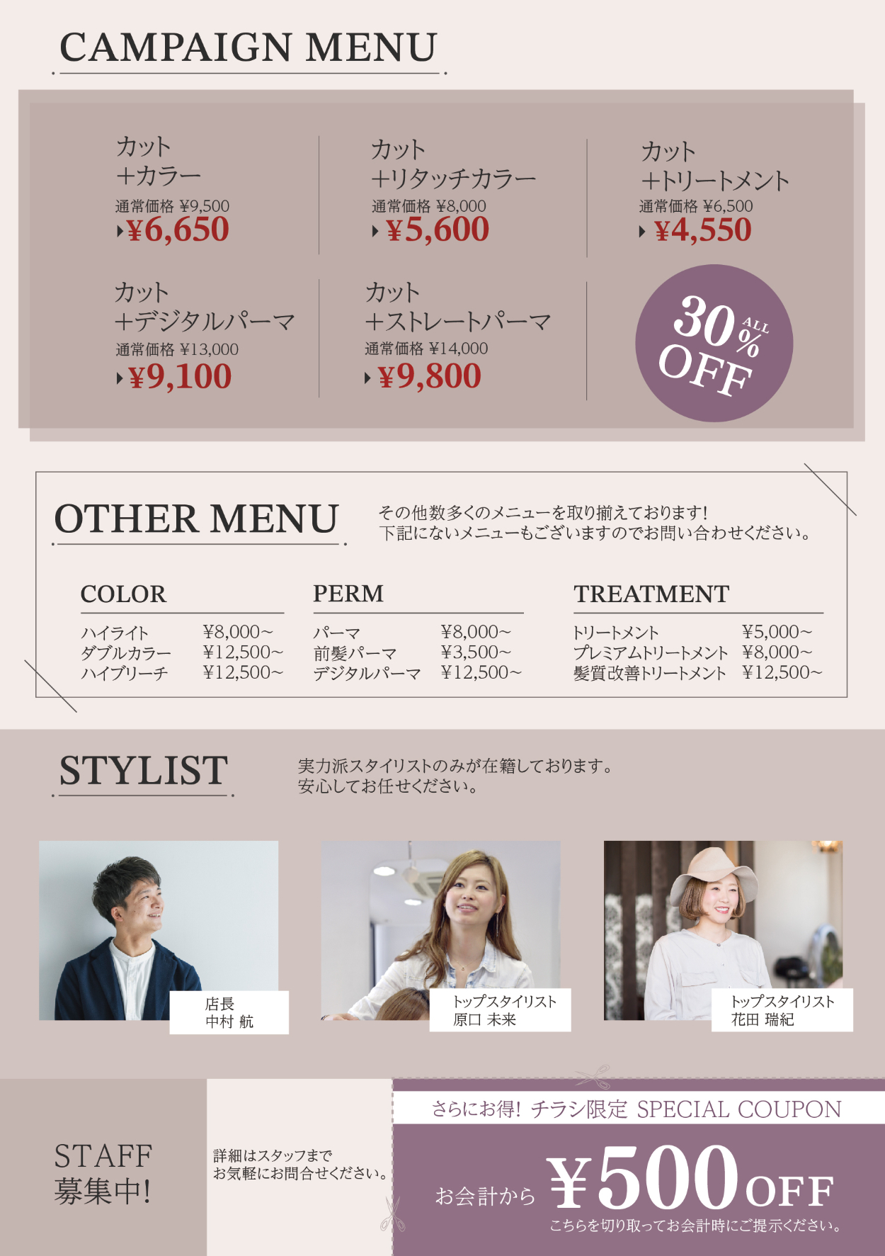 架空美容室のオープン・特別キャンペーン告知用のフライヤーの制作。