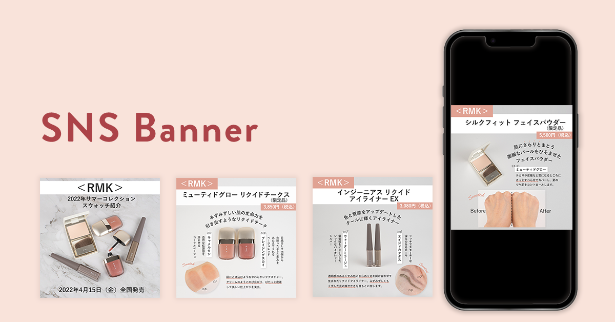 三越伊勢丹様が運用するオンライン化粧品サイトmeecoの公式SNSに投稿されるバナーを制作しました。 制作時間:8時間/使用ツール:Photoshop