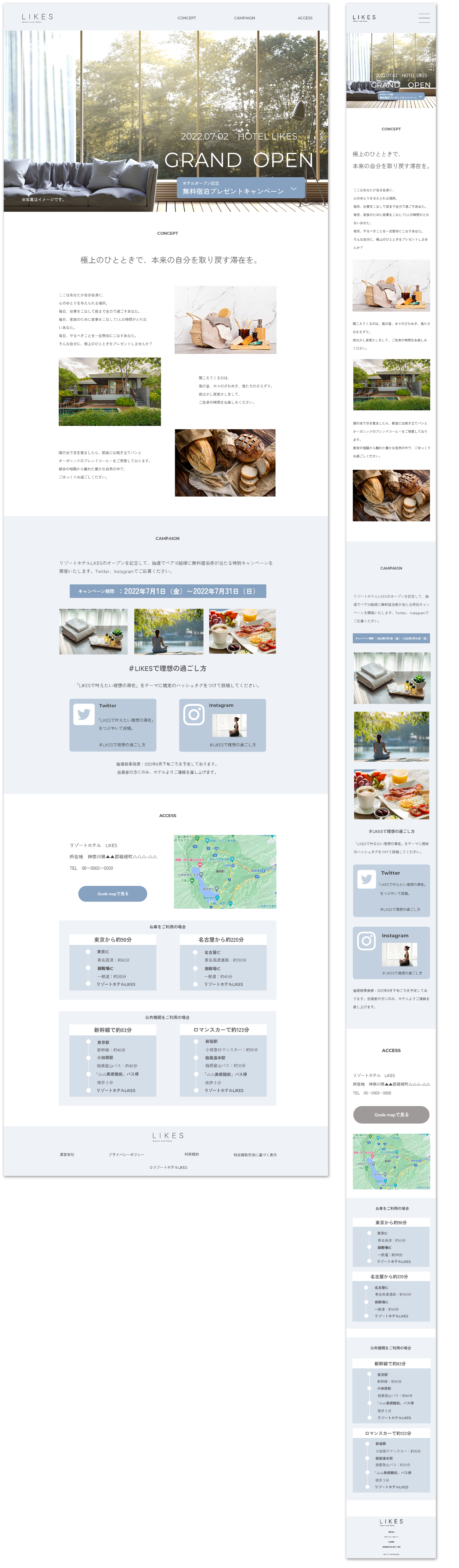 制作目的 :リゾートホテルLIKESの新規オープンにあたりSNSキャンペーンを実施する