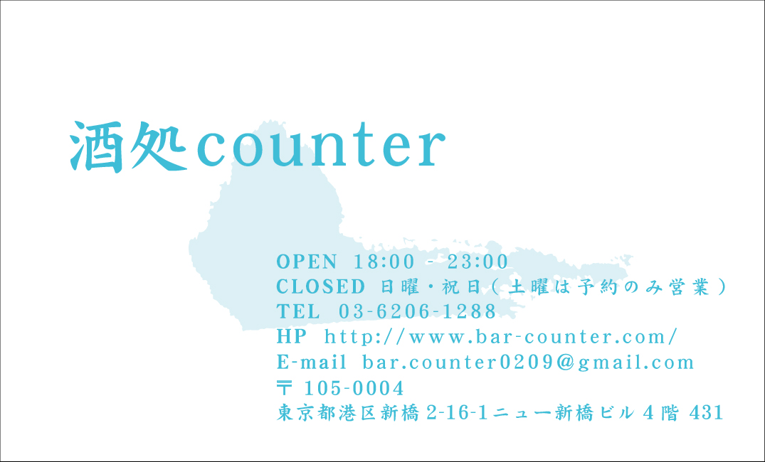 ニュー新橋日本酒BAR 酒処counterのショップカード・名刺・メニュー表・店内POP・立看板デザイン