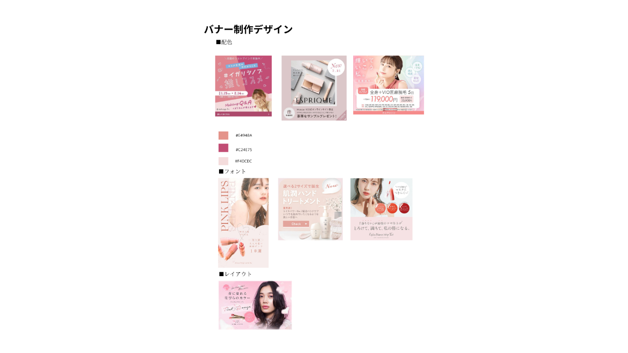 文字の目立つ箇所のカラーは#FD7895で可愛らしく女性らしさを表現しています。
