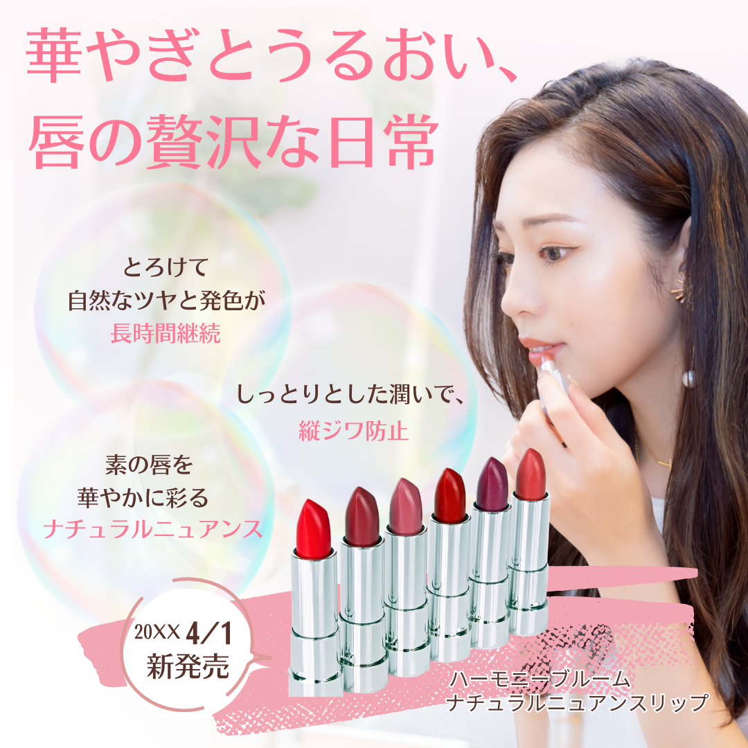 - キャッチコピーは「華やぎとうるおい、唇と贅沢な日常」であること。