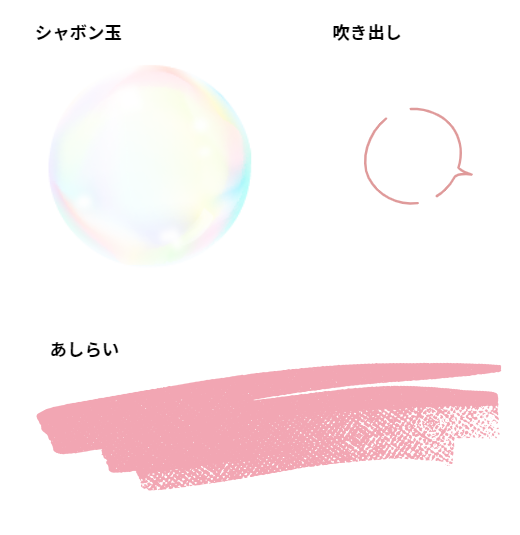 素材は女性の写真、シャボン玉、リップ、吹き出しが指定されていたので添付。