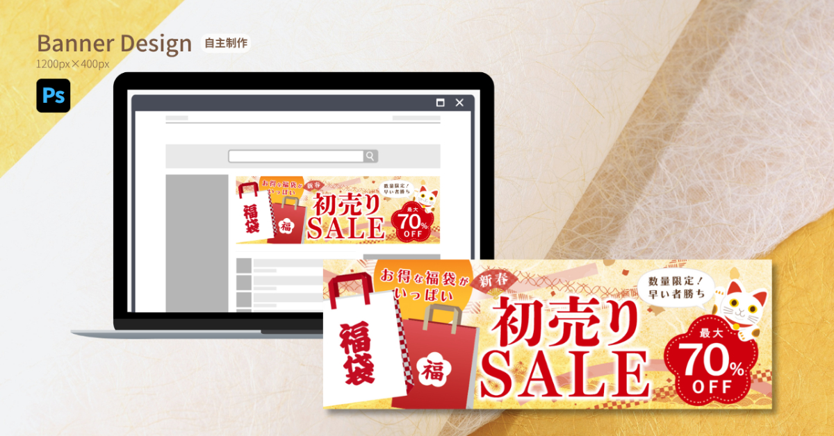 ・クリック誘導: バナーからお得な福袋情報ページへの流入を促進。