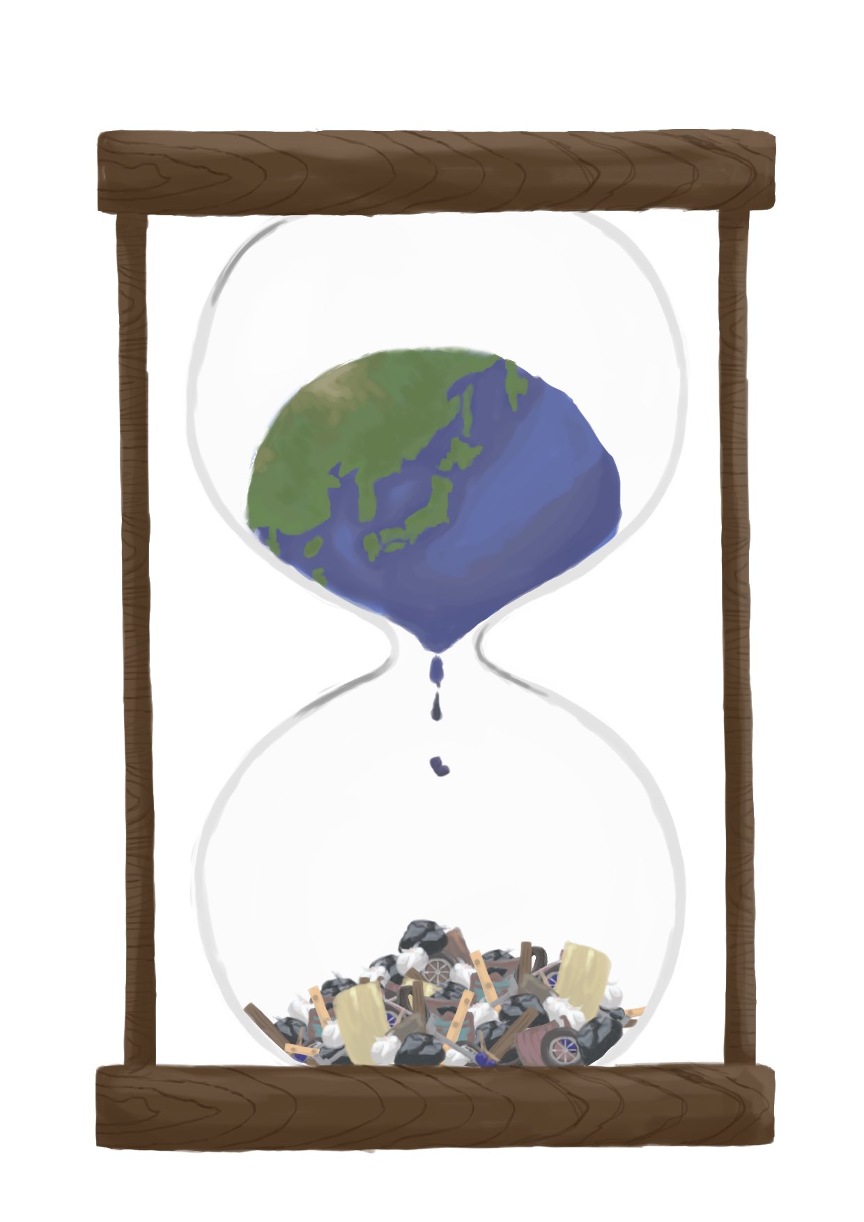 砂時計は環境汚染による地球寿命を視覚化させました。