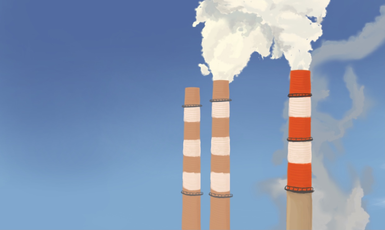 工場やゴミを燃やす事で有害な煙が放出されていく絵です。こだわりは煙に遠近感を出す事です。反省点は煙の色を黒くした上で増やし、さらに空も曇らせる事で大気汚染を表現できたのでは、と感じたところです。