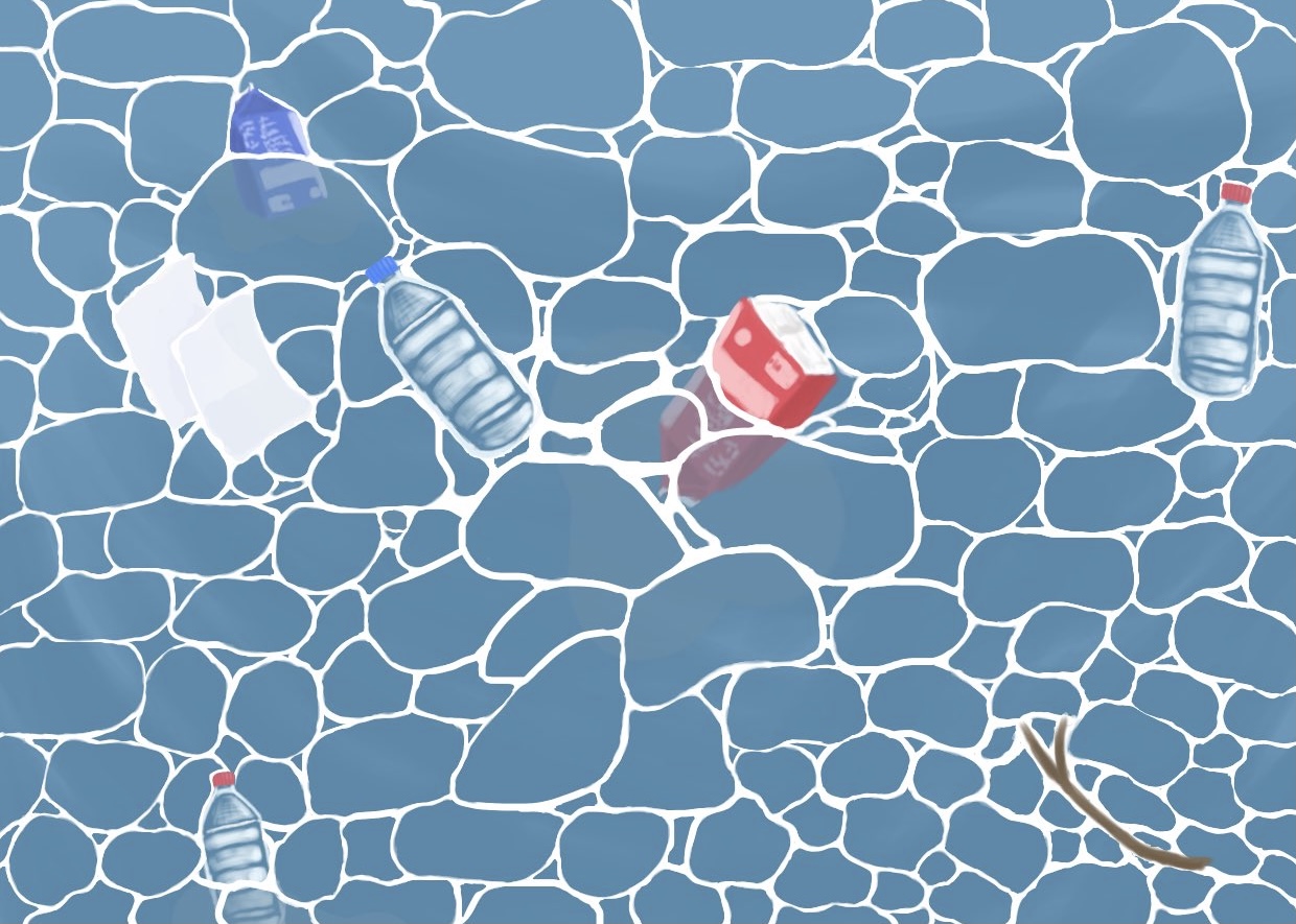 こだわった部分は水面とゴミの沈み具合です。反省点はゴミをもう少し増し、水の濁らせる事で汚染具合が表現できたのではないか、と思ったことです。