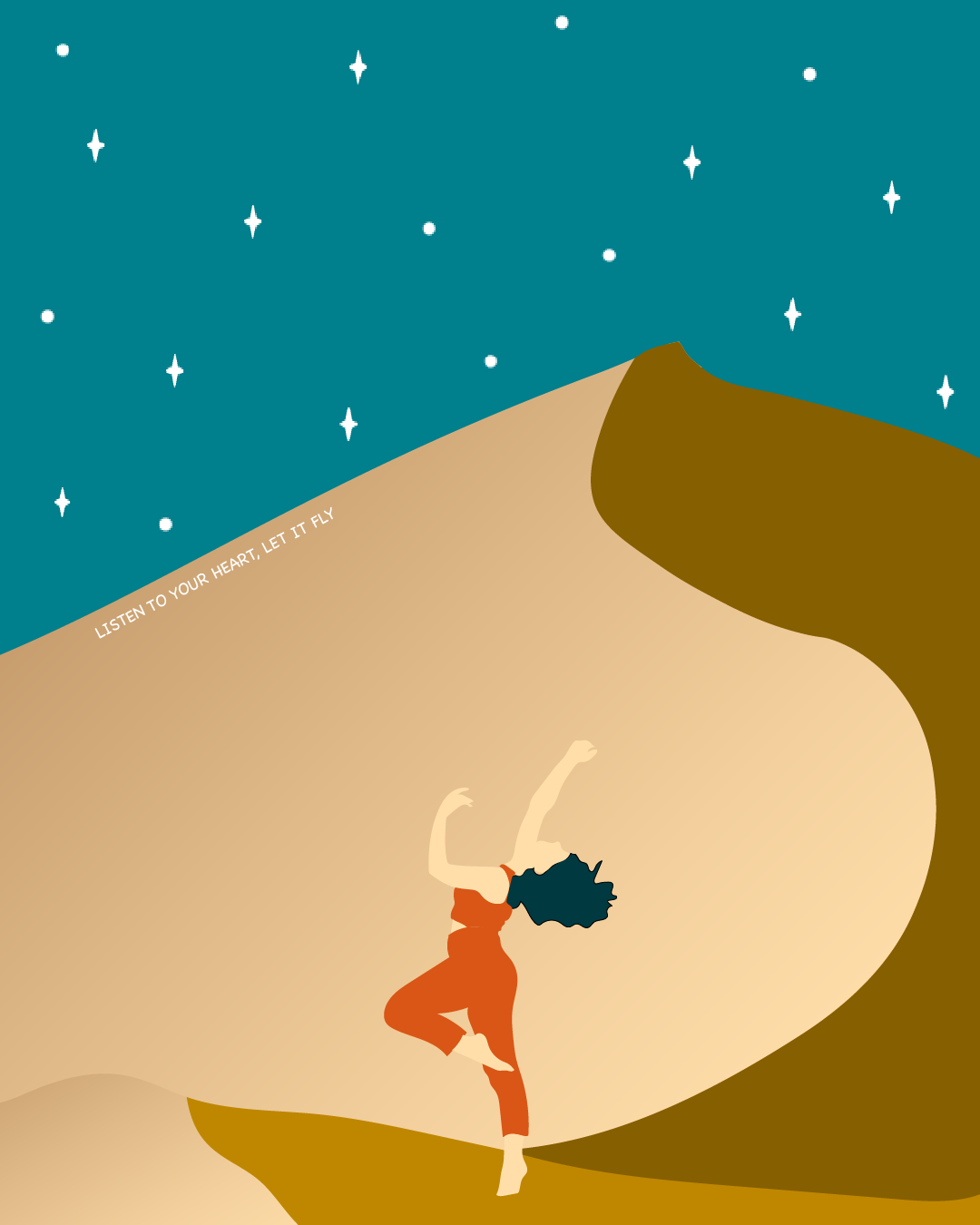 心の声に耳を傾けて、それに従って行動しようという思いで制作しました。