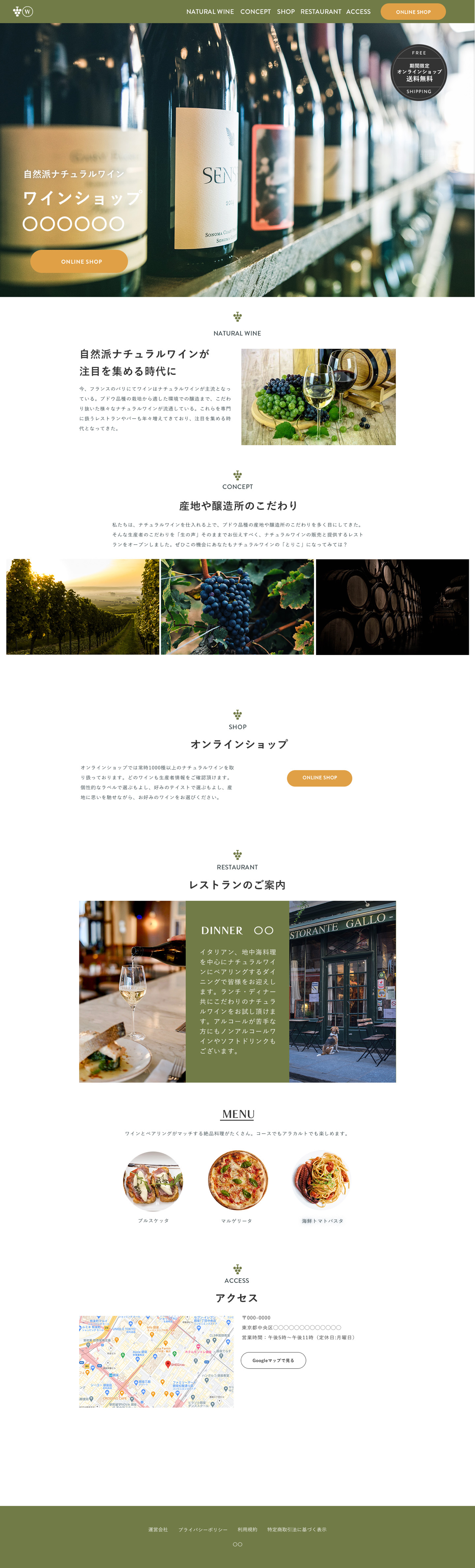 ワイン商社のオンラインショップ販促とレストランの案内のため: ナチュラルワインとは、コンセプト、オンラインショップ、レストラン案内、アクセス●ターゲット