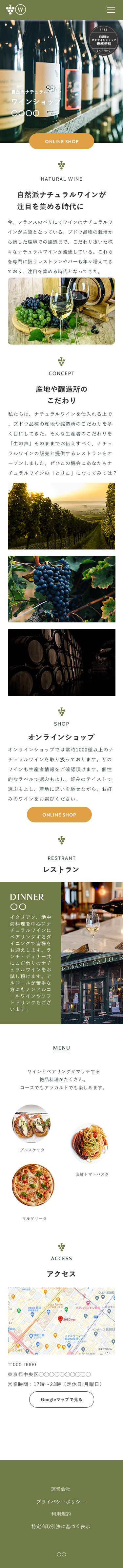 自主制作 商社(ワイン)オンラインショップとレストランをPRするLP制作 PC/スマートフォンサイズ
