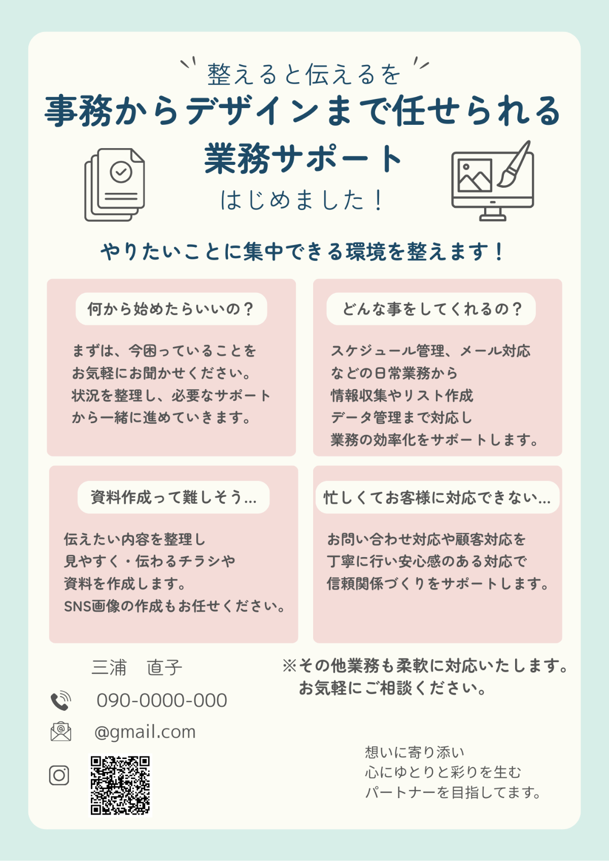 自身のデザイナー、オンライン秘書業務のフライヤーです!