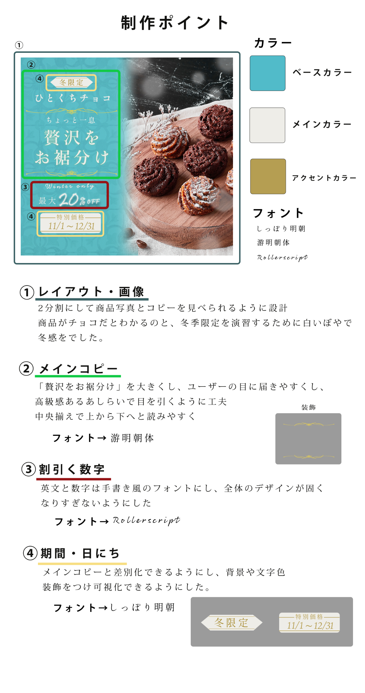目的:普段高い一口チョコが割引価格で購入できる」ことをアピールするためのバナー