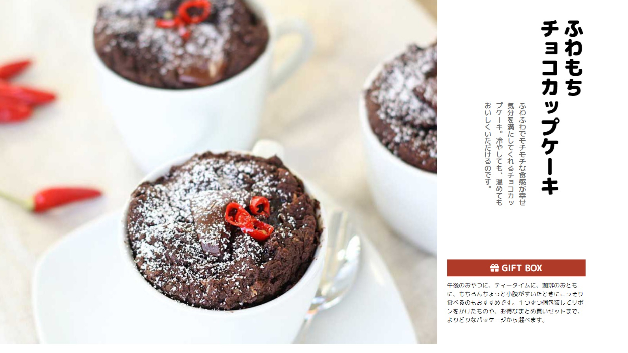 ・特定のお菓子にスポットを当て、客に訴求しやすいシンプルなデザインを実現。