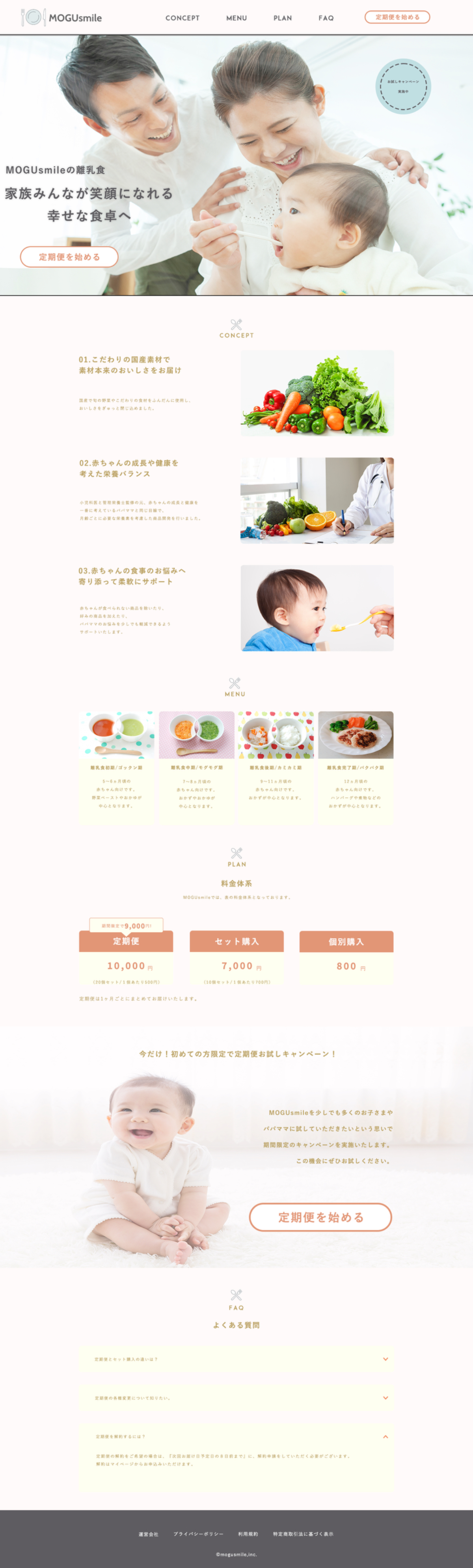 【架空のホームページ制作】実技試験 Rumi Uematsu フリーランスWebデザイナー OVERVIEW SHElikesのWebデザインコースの実技試験で離乳食のオンライン販売に関するホームページを作成しました。デザインカンプ〜コーディングまで行いました。