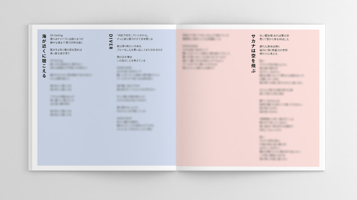 掲載するテキストは歌を聴きながら目で追う歌詞なので、余白の印象を大切にしました。