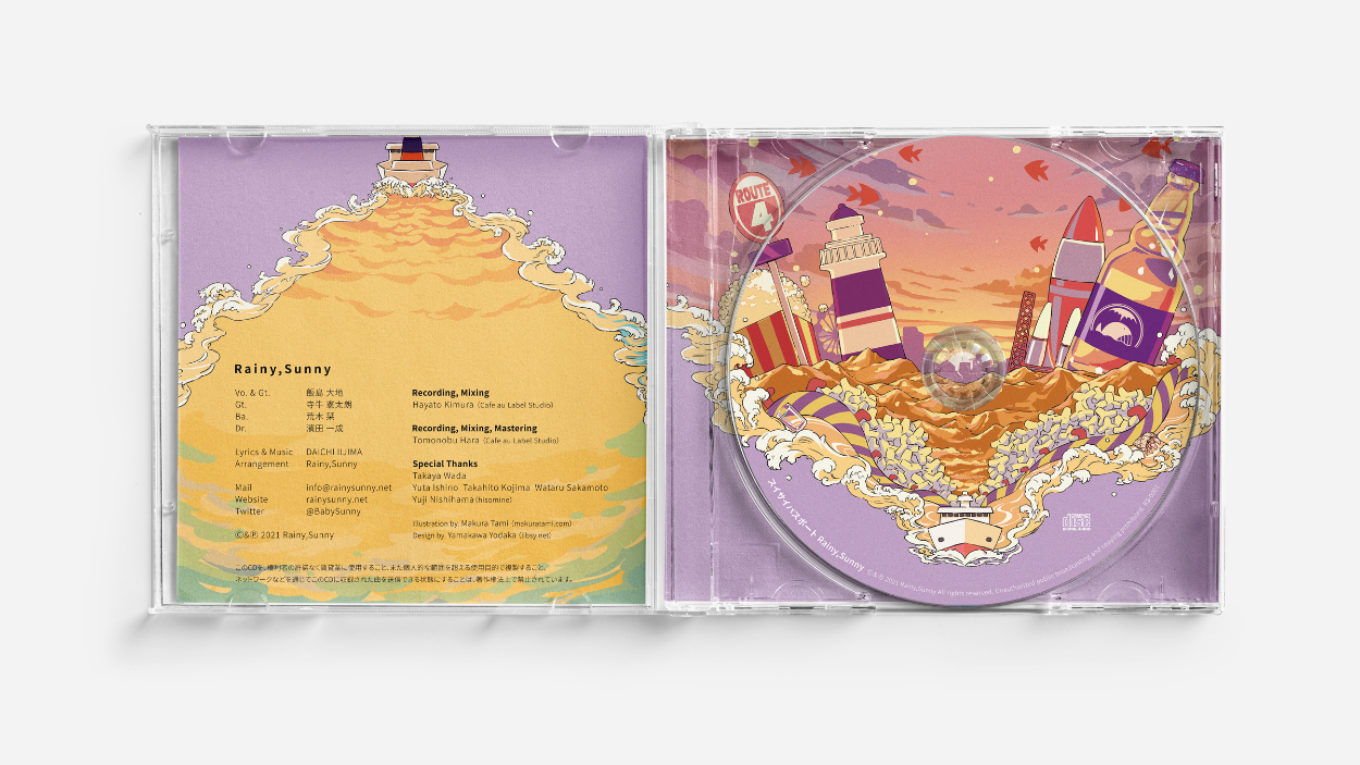 インディーズロックバンド Rainy,Sunny のCDアルバム『スイサイパスポート』のCDジャケット・歌詞カード・盤面等のデザインを担当しました。