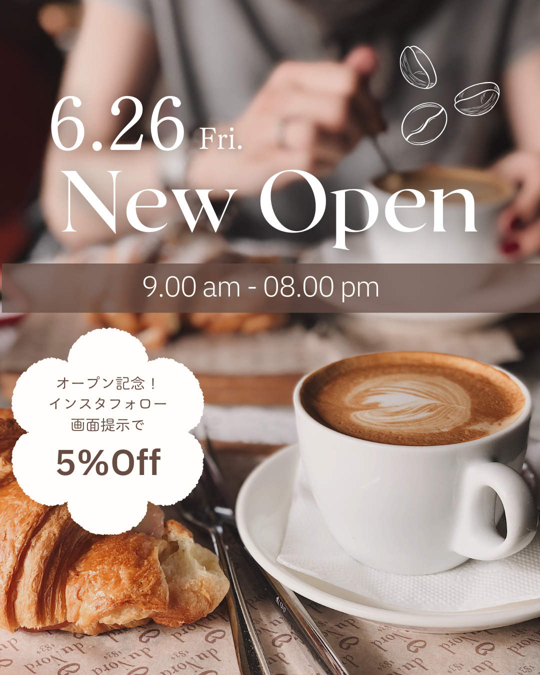 カフェの新店舗オープンを告知するInstagram投稿バナー