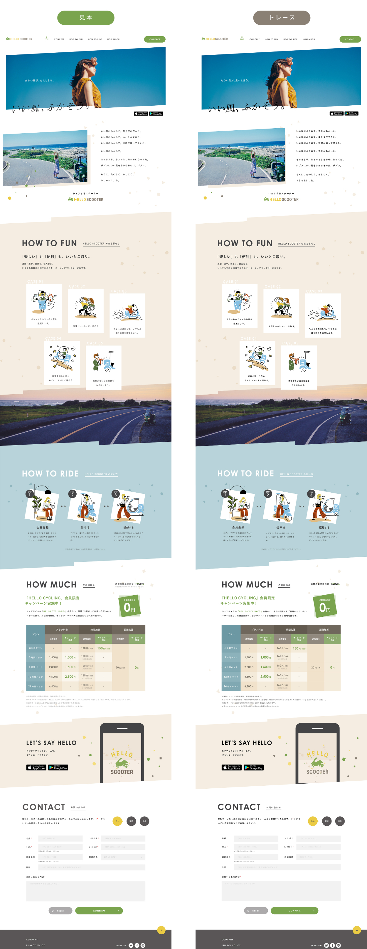 今回トレースしたサイトの表のように、横幅が広い図の見せ方や問い合わせ欄の適切なサイズについて知ることができました。
