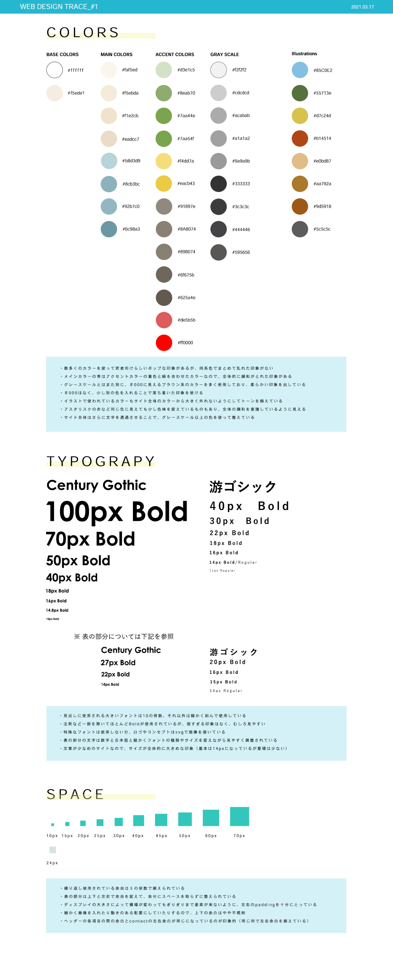 スタイルガイドではサイズが大きく感じても、実際にサイトにデザインしていくと程よくまとまっていくことがわかりました。