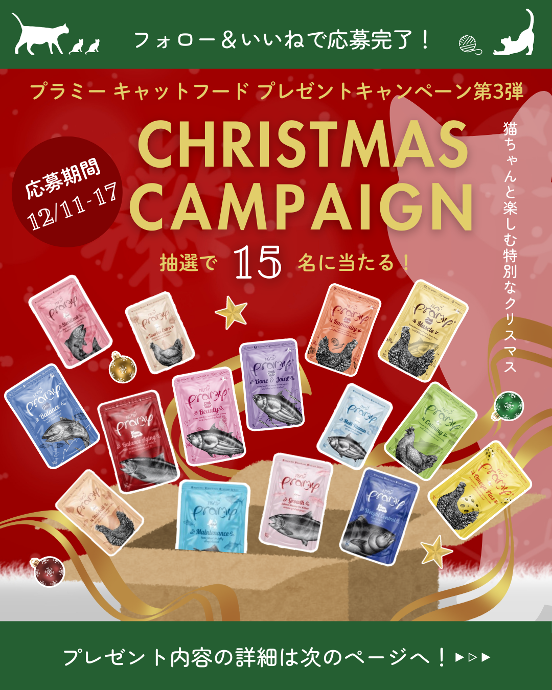 期間・プレゼント内容・当選者数・商品特徴を記載したことで、2枚でも十分な情報量を伝えられる。