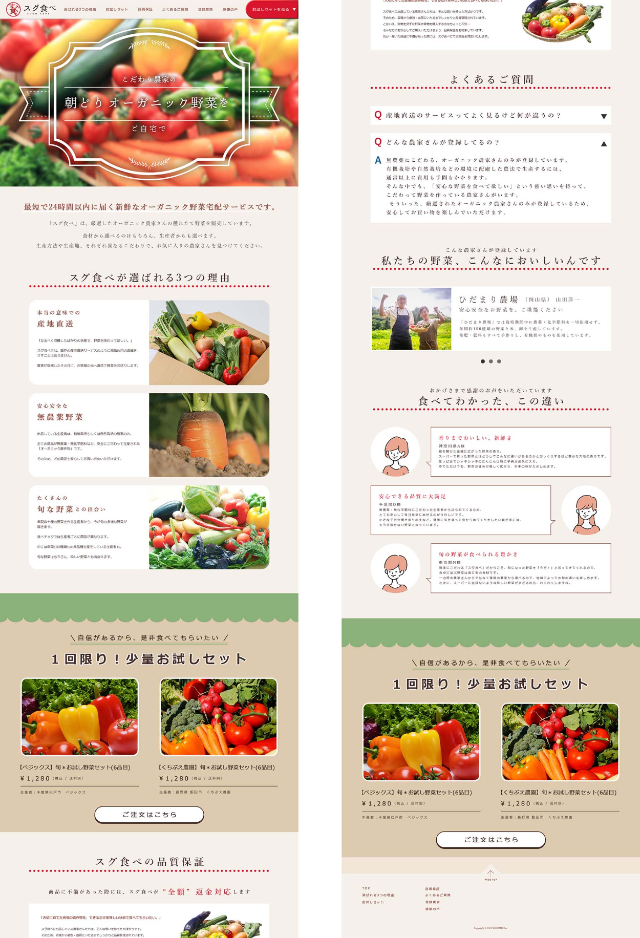 無農薬野菜の販売を行う架空店舗のLPデザインです。