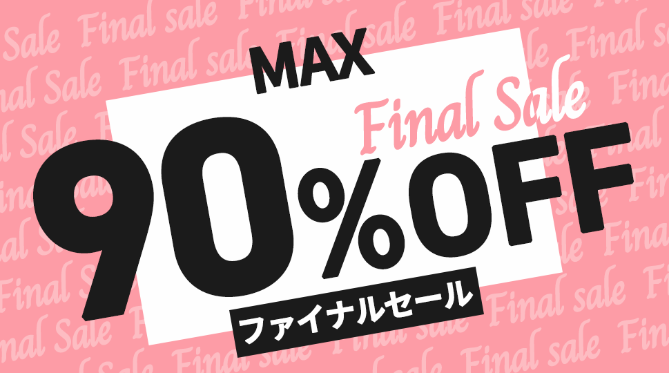 ・90%という値引き率の高さをアピールするため太めのフォントで大きく配置しました。