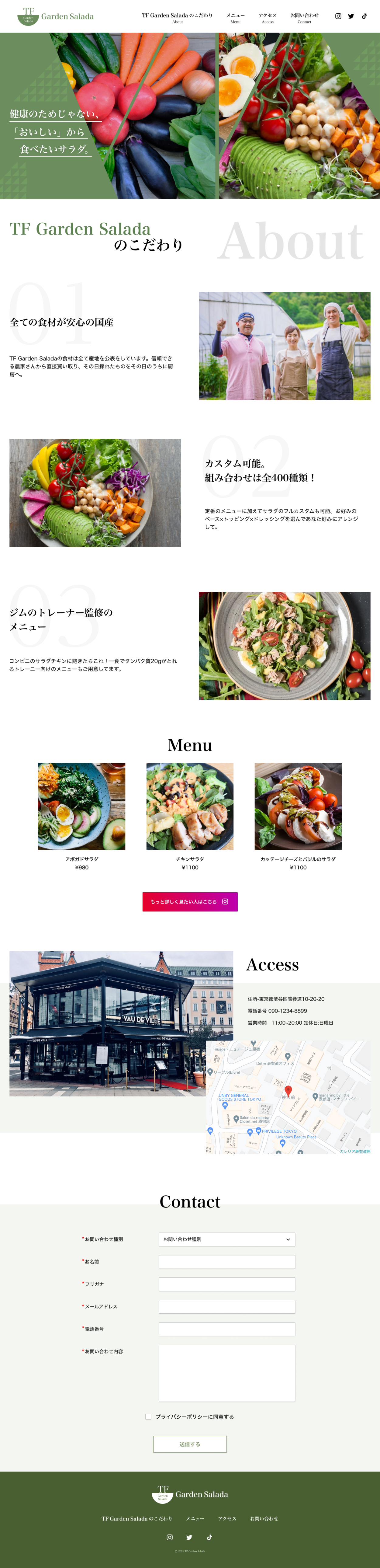サラダの専門店を表参道にオープンするので商品のこだわり、他のショップとの違いをアピールできるショップのサイトが欲しい。