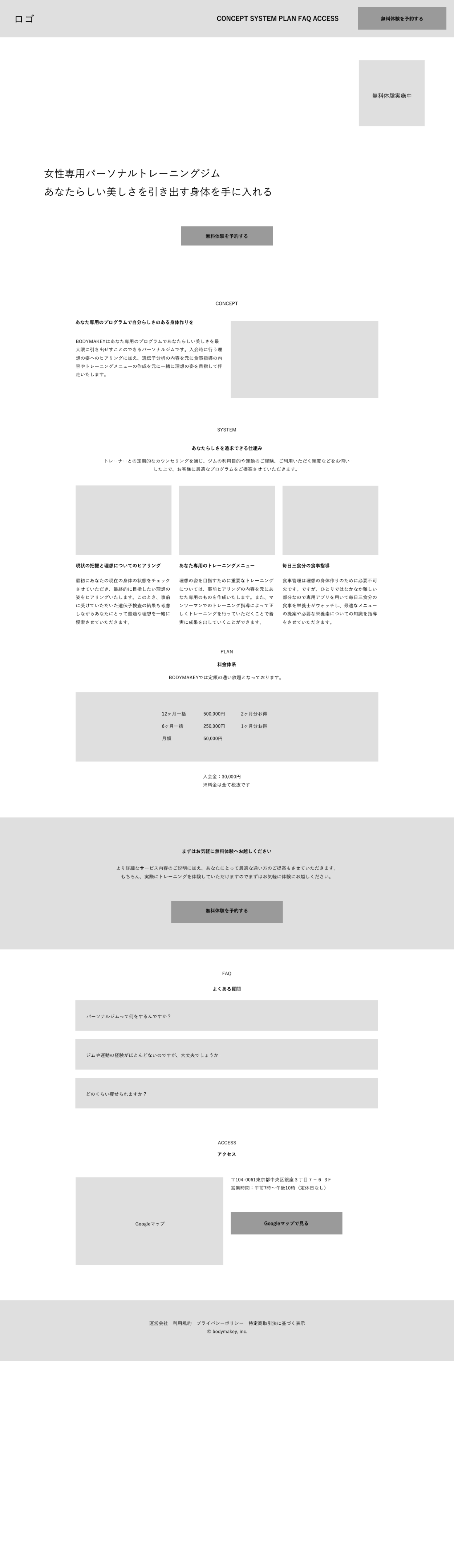 レッスン課題▷架空ジムサイトのワイヤーフレーム・デザイン・コーディングのトレース