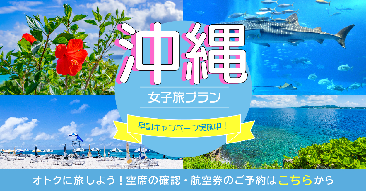 【架空】航空会社沖縄女子旅プランバナー とみたか Webデザイナー OVERVIEW 制作期間:2日 使用ツール:illustrator 制作目的:沖縄旅行の魅力を伝え、LPやキャンペーンへの誘導 ターゲット:20代女子 YEAR 2025 - 2025