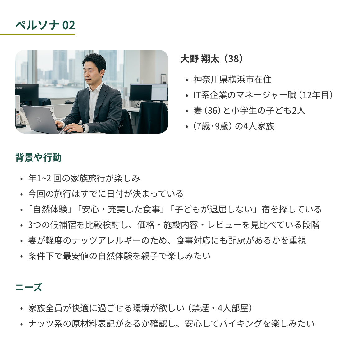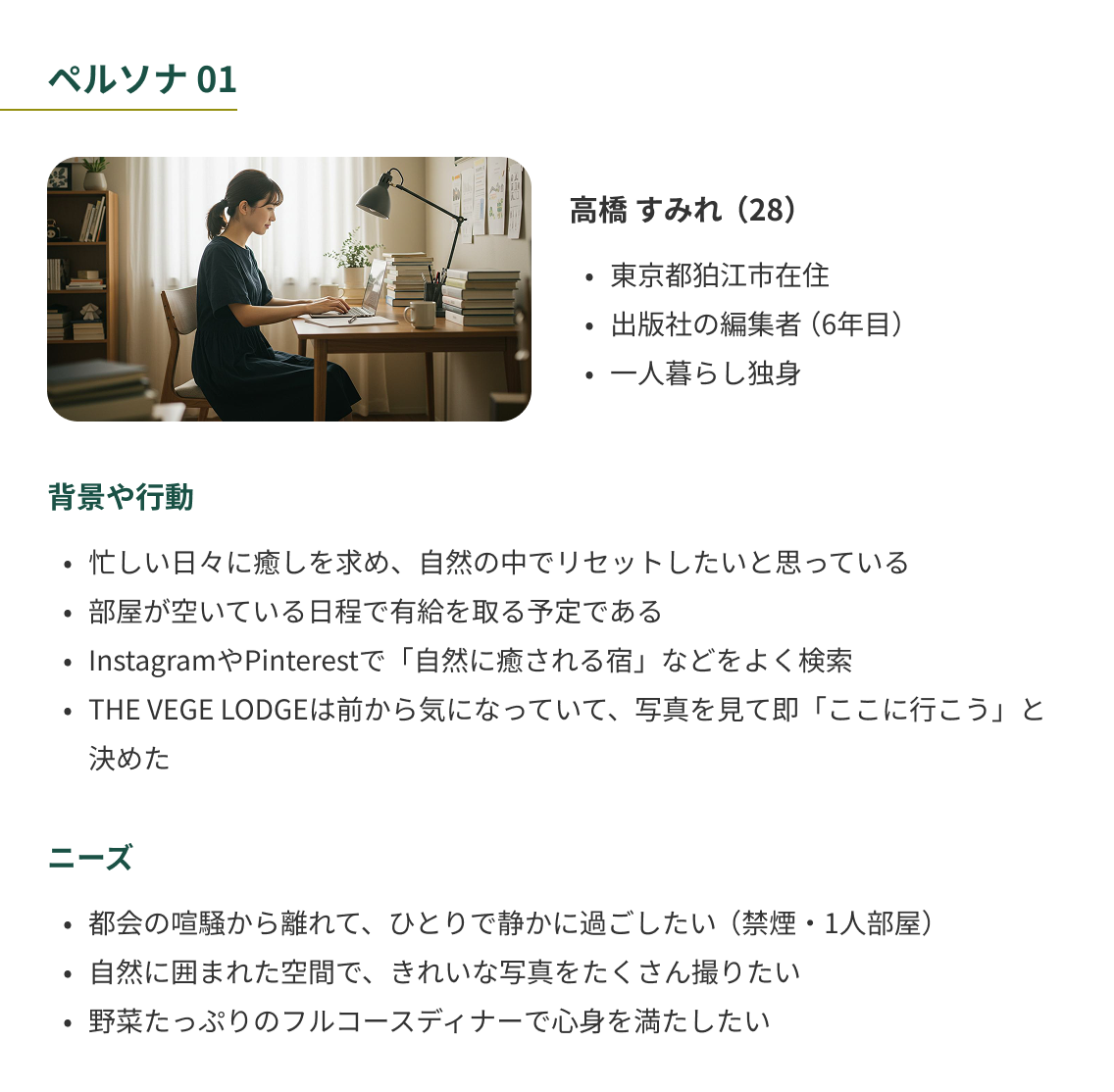 - 離脱率が高い4ページについて、ペルソナのニーズをもとに課題の仮説を設定