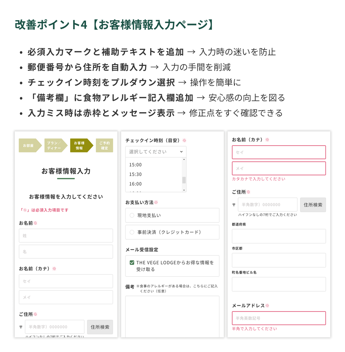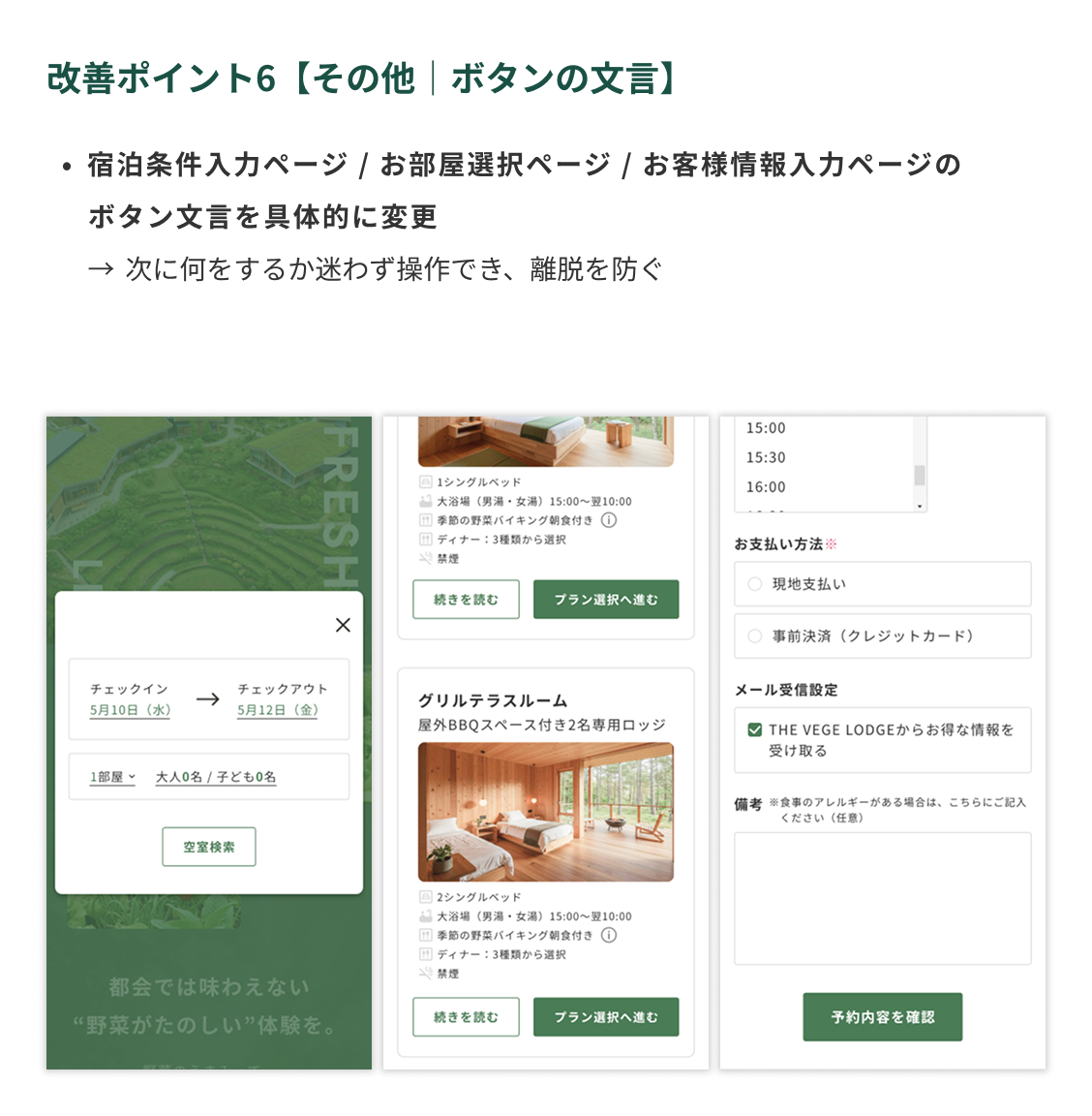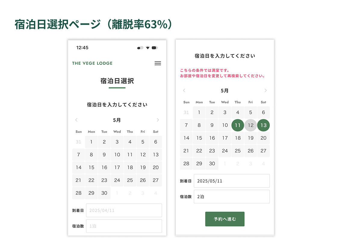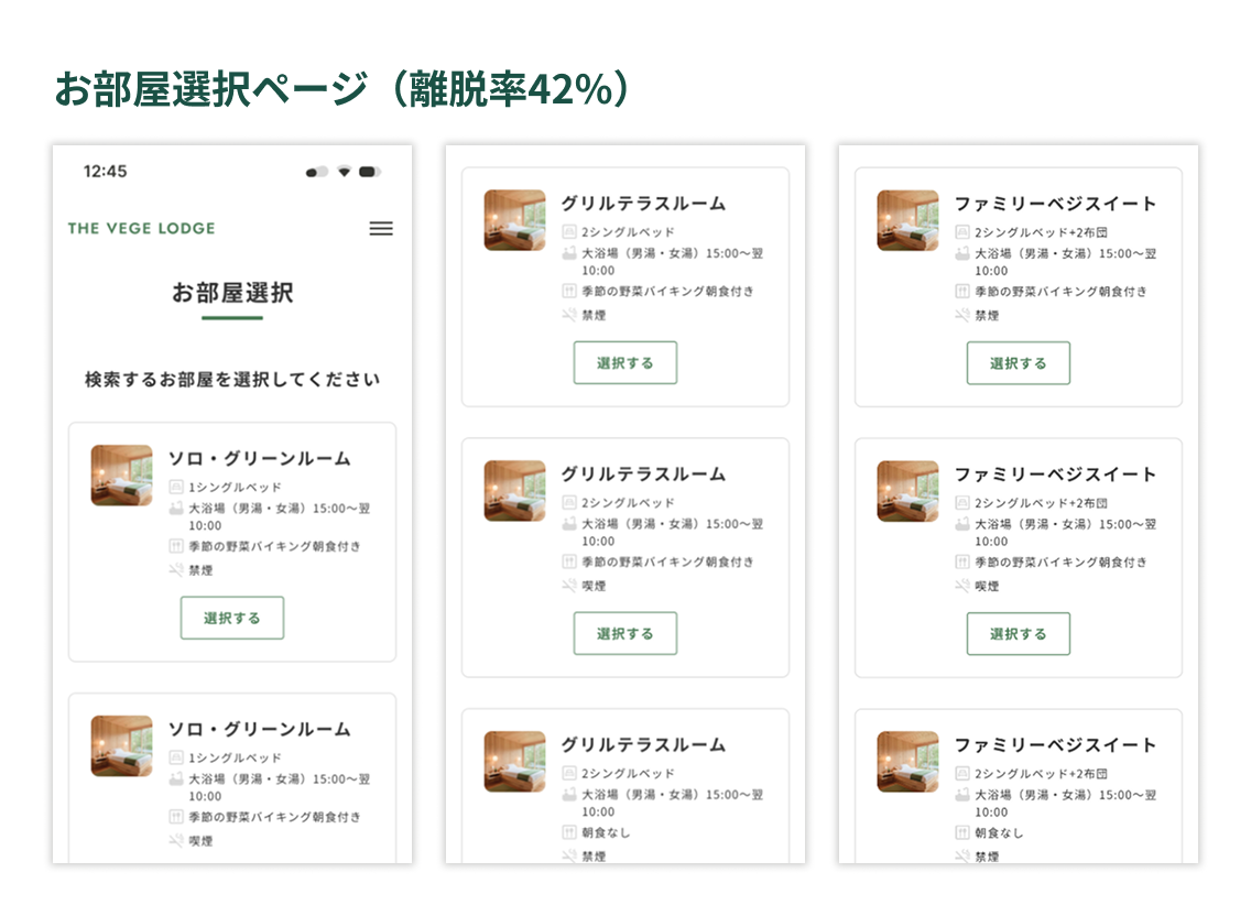 - お部屋選択後に宿泊日を選択すると空室がない場合やり直しが発生するため、ページ順の入れ替えを提案