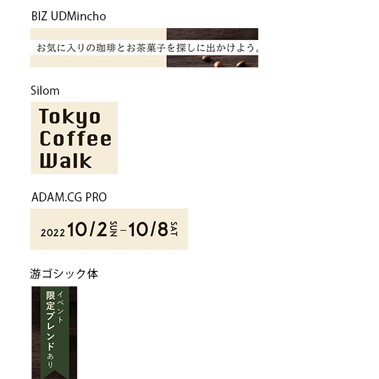 - 数字と英語:お洒落、日本語:落ち着いたイメージで選定しました。